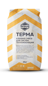Клеевая смесь BRAUG ТЕРМА / BE200 предназначена для крепления на минеральных основаниях пенополистирольных (ППС) и минераловатных (МВ) плит любой плотности и создания на них базового армированного штукатурного слоя при устройстве фасадных  теплоизоляционных композиционных систем  (СФТК) на объектах индивидуального жилищного строительства (СП 55.13330.2011).