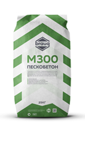Универсальная сухая строительная смесь BRAUG M300 ПЕСКОБЕТОН –это готовый цементно-песчаный состав, предназначенный для быстрого приготовления строительного цементного раствора или бетона марки прочности не менее М300.